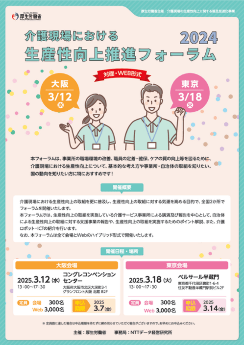 厚生労働省主催の「介護現場における生産性向上推進フォーラム2024大阪」は、2025年3月12日、大阪市のコングレコンベンションセンターにて開催された。