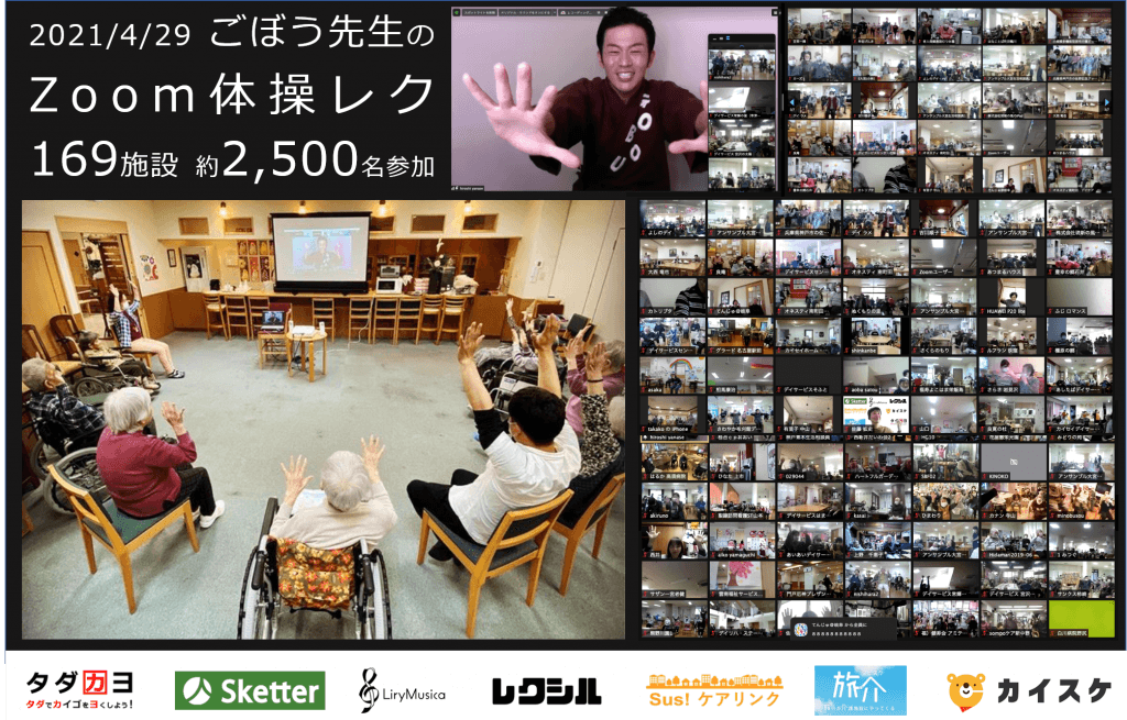 NPO法人タダカヨは、コロナ禍のご高齢者に楽しみを届けたいという想いから、介護ソーシャルベンチャー7社と共に「無料オンラインレク」を毎月開催しています。第10回目となる今回は、ごぼう先生による体操レクを開催致します。