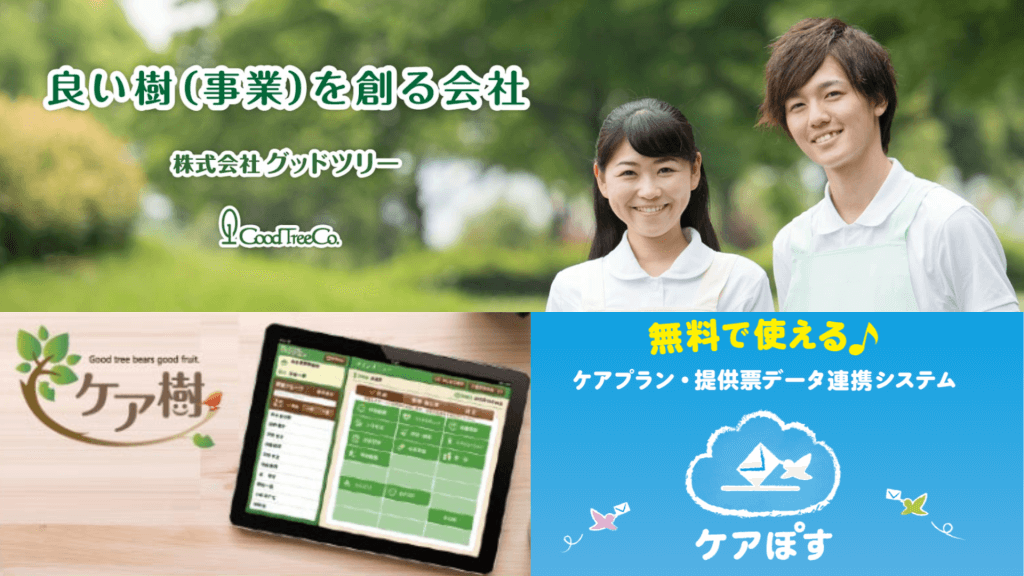 グッドツリー様は、「真の復興は事業を通じて介護事業者様と我々の双方が繁栄すること」と考え、介護ソフト「ケア樹」や無料データ連携ツール「ケアぽす」などのサービスを提供されています。自社サービスと様々なIoTや、ロボット、AI等との連携を進め、「シニアライフをサポートするプラットフォーム」として、介護業界の科学的介護を牽引されているリーディングカンパニーです。