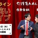 2021年2月3日 / 最終更新日 : 2025年12月4日 ヒロス タダレク:無料オンラインレク <受付終了>【2/18開催】無料オンラインお笑いライブ 介護芸人 あんぽんたん(鹿見勇輔氏 新藤正啓氏) 新型コロナウイルスの第3波が猛威を振るう中、高齢者の命と生活を守るために働かれている医療介護従事者の皆様に心から感謝を申しあげます。 この度、自粛生活を余儀なくされている皆さまにお楽しみ頂けたらという想いから、オンライン […]