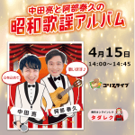 2023年3月7日 / 最終更新日 : 2025年12月4日 ヒロス タダレク:無料オンラインレク 受付終了【4/15開催】中田亮さまと阿部泰久さまの「昭和歌謡アルバム」 タダレクVol.30 NPO法人タダカヨは、コロナ禍のご高齢者に楽しみを届けたいという想いから、無料オンラインレクイベント「タダレク」を毎月開催しています。第30回目となる今回は、シニアに人気急上昇、懐メロプリンス 中田亮さんと阿部泰久さんの […]
