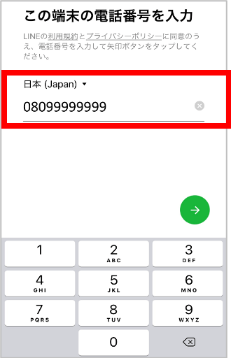 6.ご自身の携帯電話番号を入力し、「→」を押す。