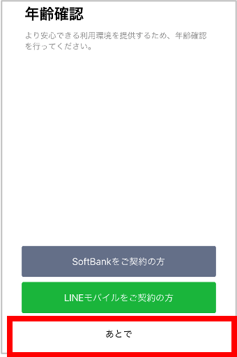 13.年齢確認画面が出たら、「あとで」を押す。