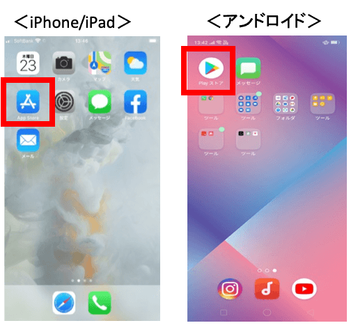 1.ホーム画面の「App Store」もしくは「Playストア」を押す。