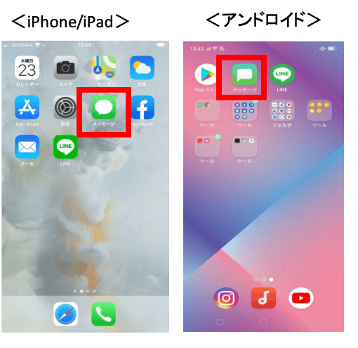 8.ホーム画面に戻り、メッセージ(らくらくフォンの場合はメール)を押す。