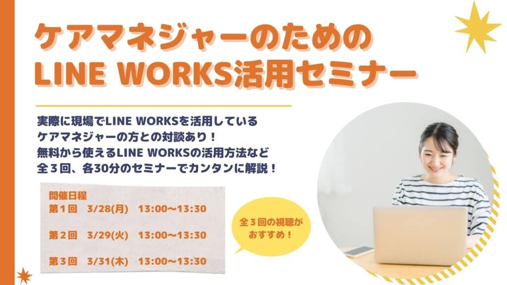 受付終了【3/28,29,31開催】ケアマネジャーのためのLINE WORKS活用セミナー