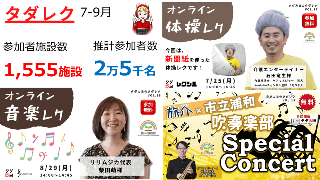 「コロナ禍のご高齢者に楽しみを届けたい!」「高齢者施設にZoom活用のきっかけを提供したい!」という想いから始めたタダカヨの無料オンラインレク「タダレク」。