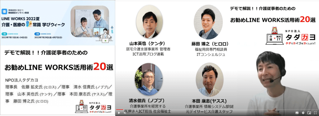 ワークスモバイルジャパン様が主催する「介護と医療の新常識学びウィーク」において、NPO法人タダカヨ理事5名がビデオ登壇させて頂きました。