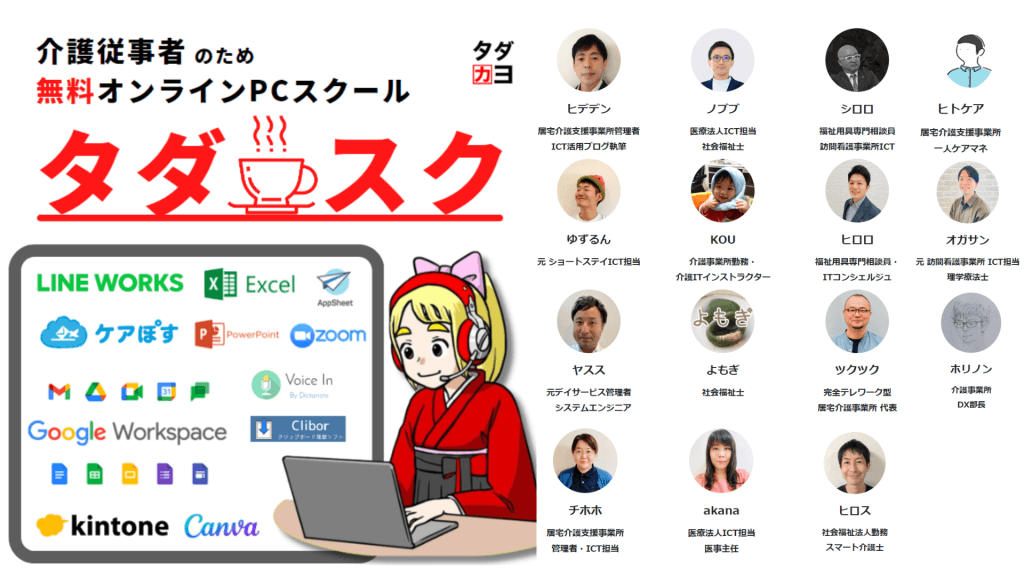 「介護従事者に実践的なICTスキルを届けたい!」という想いから始めた無料オンラインPCスクール「タダスク」。