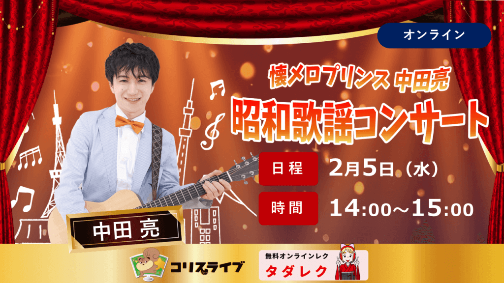 【2/6開催・タダレク】懐メロプリンス中田亮の昭和歌謡コンサート