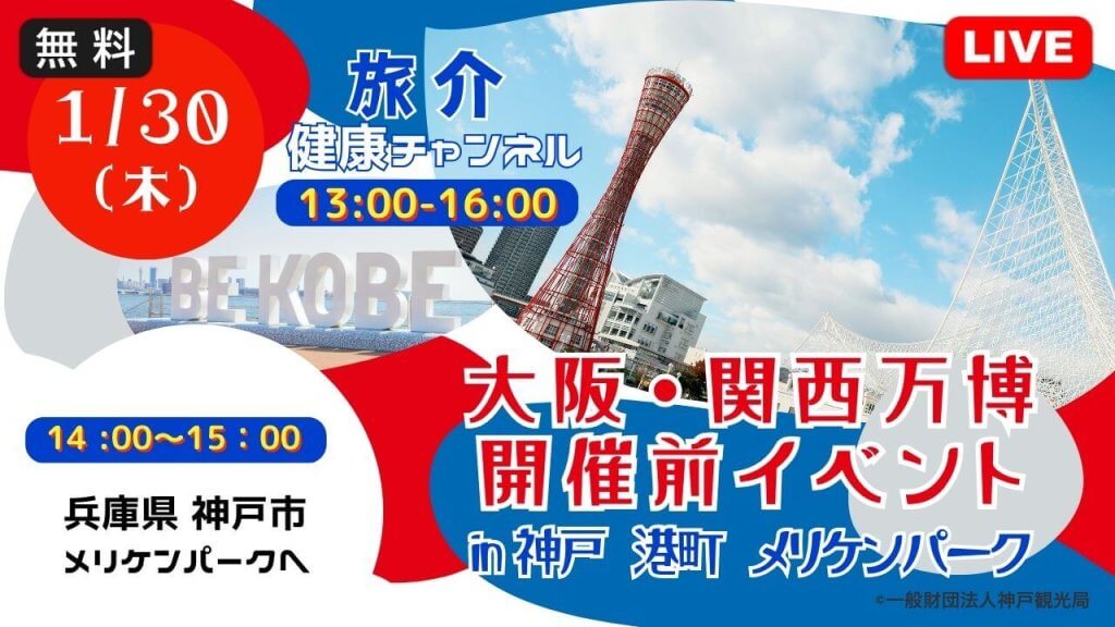 旅介TV」様とのコラボレーションにより、2025年大阪・関西万博の開催に先駆け、神戸の美しいメリケンパークからの生中継をお届けしました。