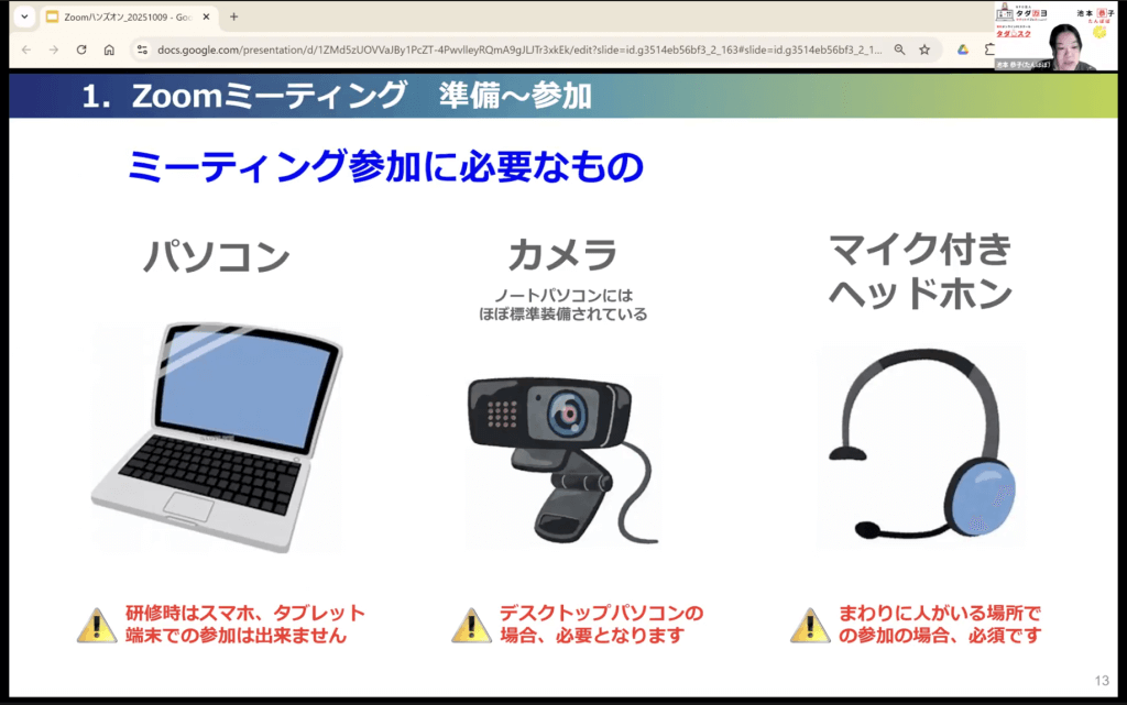 10月9日 Zoom初級実践講座 Zoomの基本操作を「さわって覚える」スタイルで習得。オンライン会議への苦手意識を解消🙌。