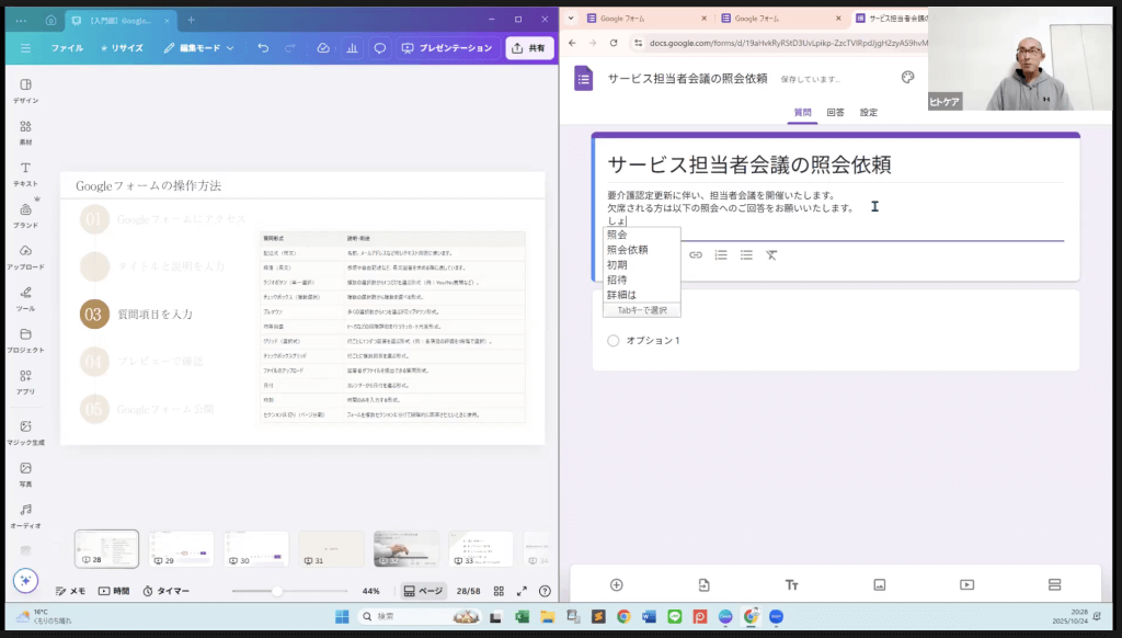 10月24日 Googleフォーム導入編 未だFAXが多いサービス担当者会議の照会をペーパーレス化する具体策を習得。