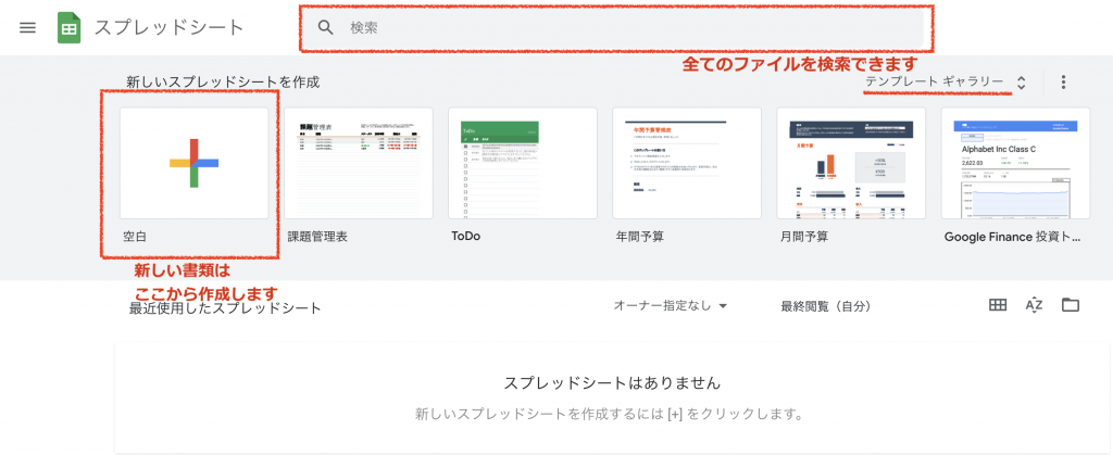 3. ログインするとスプレッドシートのファイル一覧が開きます。