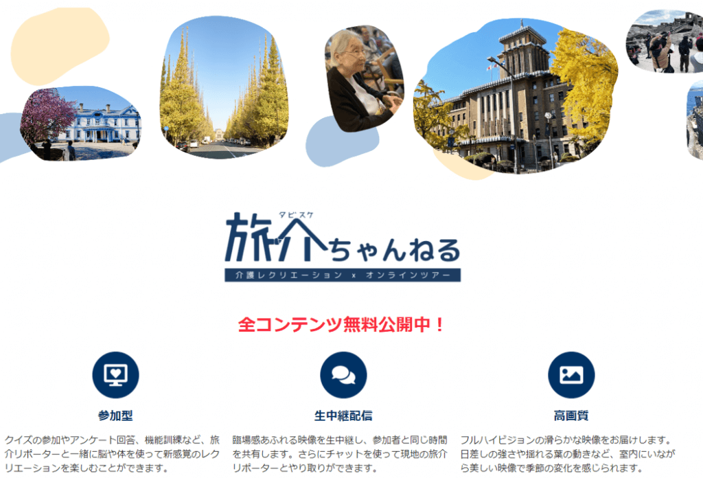 NPO法人タダカヨは、介護施設向けオンライン旅行サービス「旅介(たびすけ)」を応援しています。