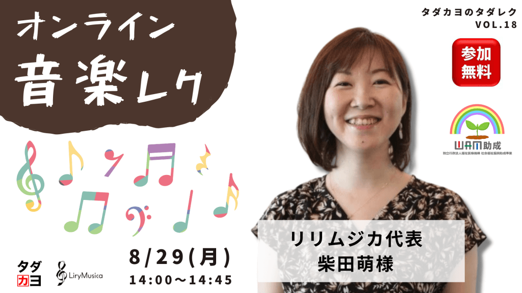 受付終了【8/29開催】無料オンライン音楽レク リリムジカ柴田萌さん タダレクvol.18
