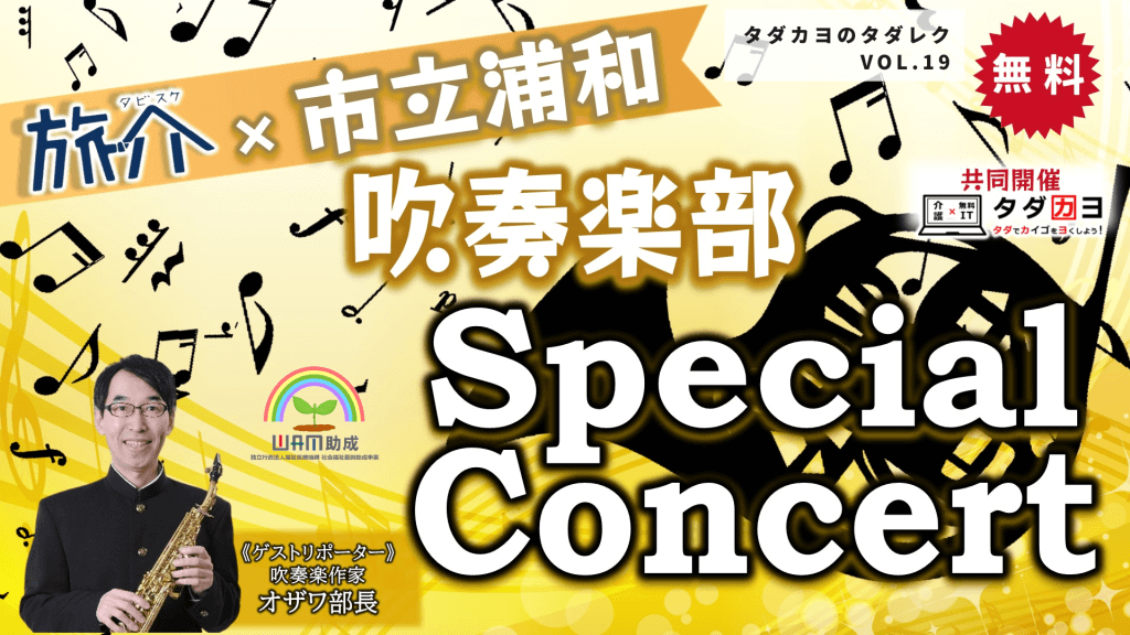 第19回目となる今回は、高齢者施設向けオンラインツアーサービス・旅介さま、そしてさいたま市立浦和高等学校、通称「市立浦和(いちりつうらわ)」吹奏楽部の皆様と共に「オンライン・スペシャルコンサート」をお届けいたします。