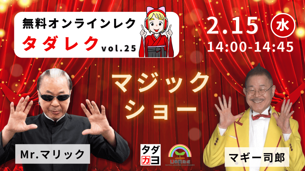 受付終了【2/15開催】Mr.マリック&マギー司郎による無料オンラインマジックショー  タダレク vol.25