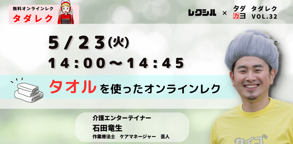 受付終了【5/23開催】”タオル”を使った体操レク by 介護エンターテイナー石田竜生様 タダレクVol.32