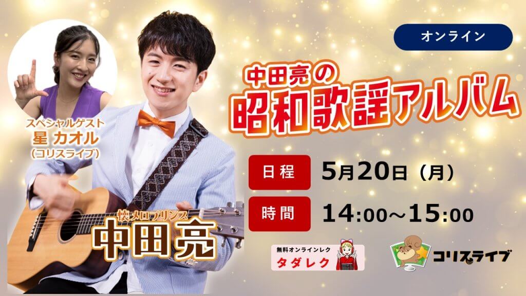 懐メロプリンス中田亮が、自身の音楽仲間と一緒に、昔なつかしい「昭和歌謡曲」をお届けいたします。