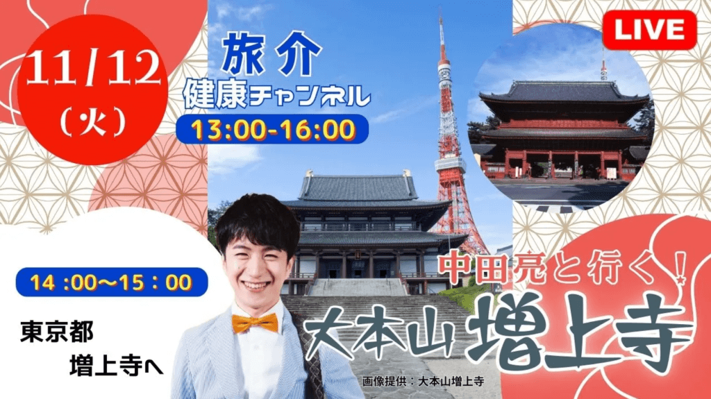 受付終了【11/12 開催】旅介【生中継】中田 亮と行く!大本山 増上寺~タダレクvol.60~