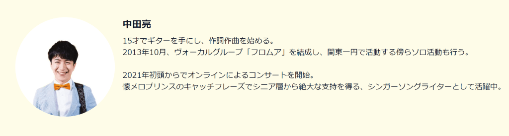 <出 演> シンガーソングライター 中田 亮さん