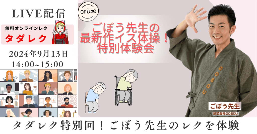 受付終了【9/13開催】ごぼう先生の最新イス体操!特別体験会~タダレク特別回~