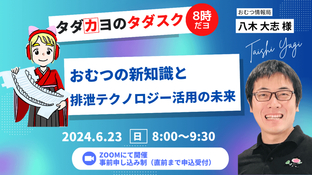 受付終了【6/23開催】『おむつの新知識と排泄テクノロジー活用の未来』 ~8時だョタダスク集合!~