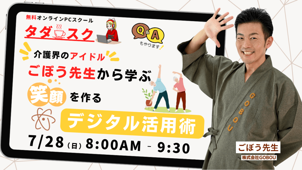 受付終了【7/28開催】『ごぼう先生から学ぶ「笑顔を作る」デジタル活用術』 ~8時だョタダスク集合!~