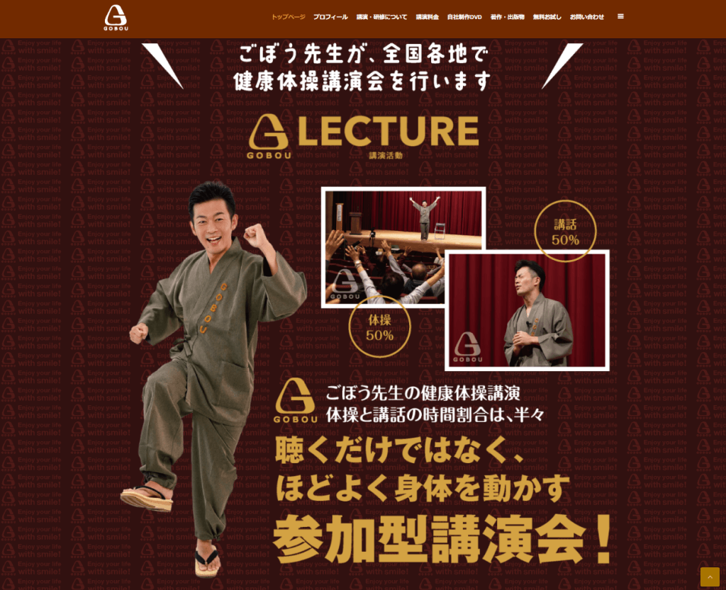 ごぼう先生のモットーでもある「表情」が変われば「動き」も変わる!健康体操を中心に「介護予防」を明るく楽しく伝え、高齢者の皆様の笑顔をつくりだします。