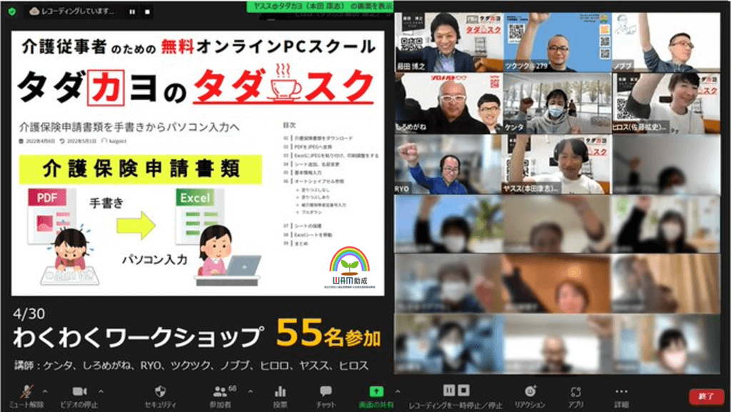 NPO法人タダカヨは、介護従事者のICT活用スキルの向上に貢献したいという想いから、無料オンラインPCスクール「タダスク」を定期開催しています。