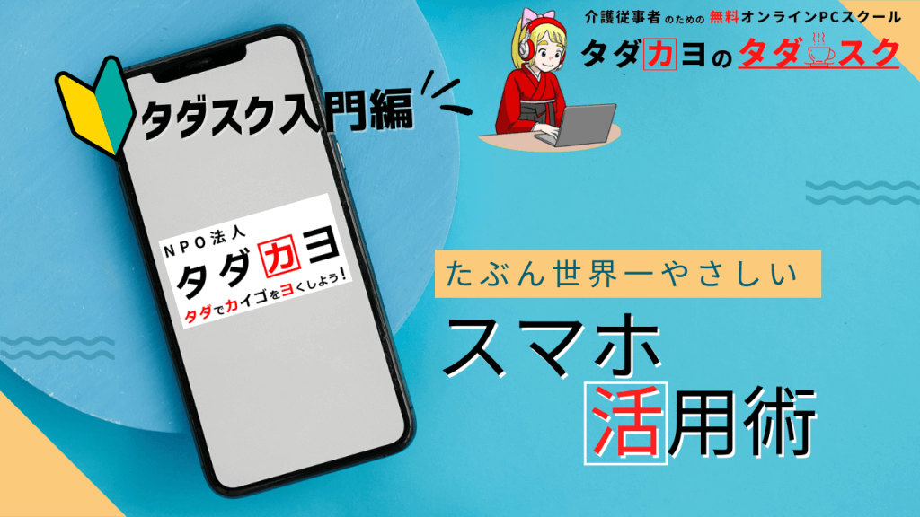 NPO法人タダカヨは、介護従事者のICT活用スキルの向上に貢献したいという想いから、無料オンラインPCスクール「タダスク」を定期開催しています。